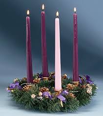 · Sobre el círculo de follaje se colocan tres velas moradas; éstas nos recuerdan el deseo de ser mejores y perfeccionarnos cada día. Se encienden los primeros tres domingos de Adviento.